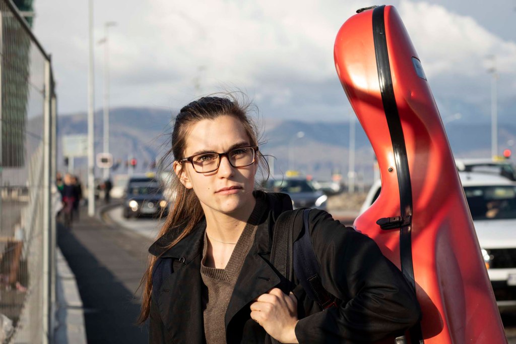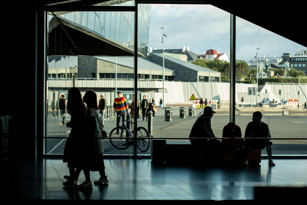 Dall’altro lato della strada, una ragazza sgambetta a passo svelto portando sulle spalle un violoncello quasi più grande di lei: si chiama Geirthrudur e il suo concerto all’Harpa inizia a breve.