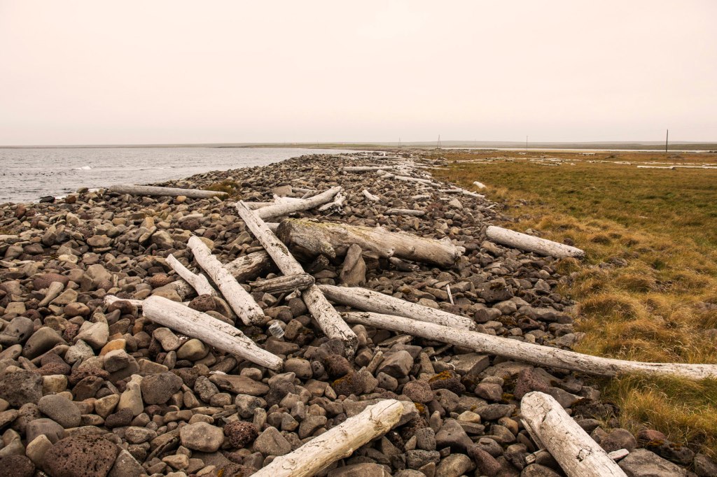 La desolata costa del nord, immersa nella nebbia, ci vede vagare solitari, se non fosse per qualche macchina che va nella direzione opposta. Sulle spiagge sassose di ammassano grossi tronchi levigati dall’acqua e dal sale e portati da chissà dove, pare dalla Siberia, dalla corrente oceanica. Giungiamo al paese di Raufarhofn, un villaggio di poche case intorno a un porto. Qualche cavallo bruca annoiato in un prato che sembra confinare con l’oceano.